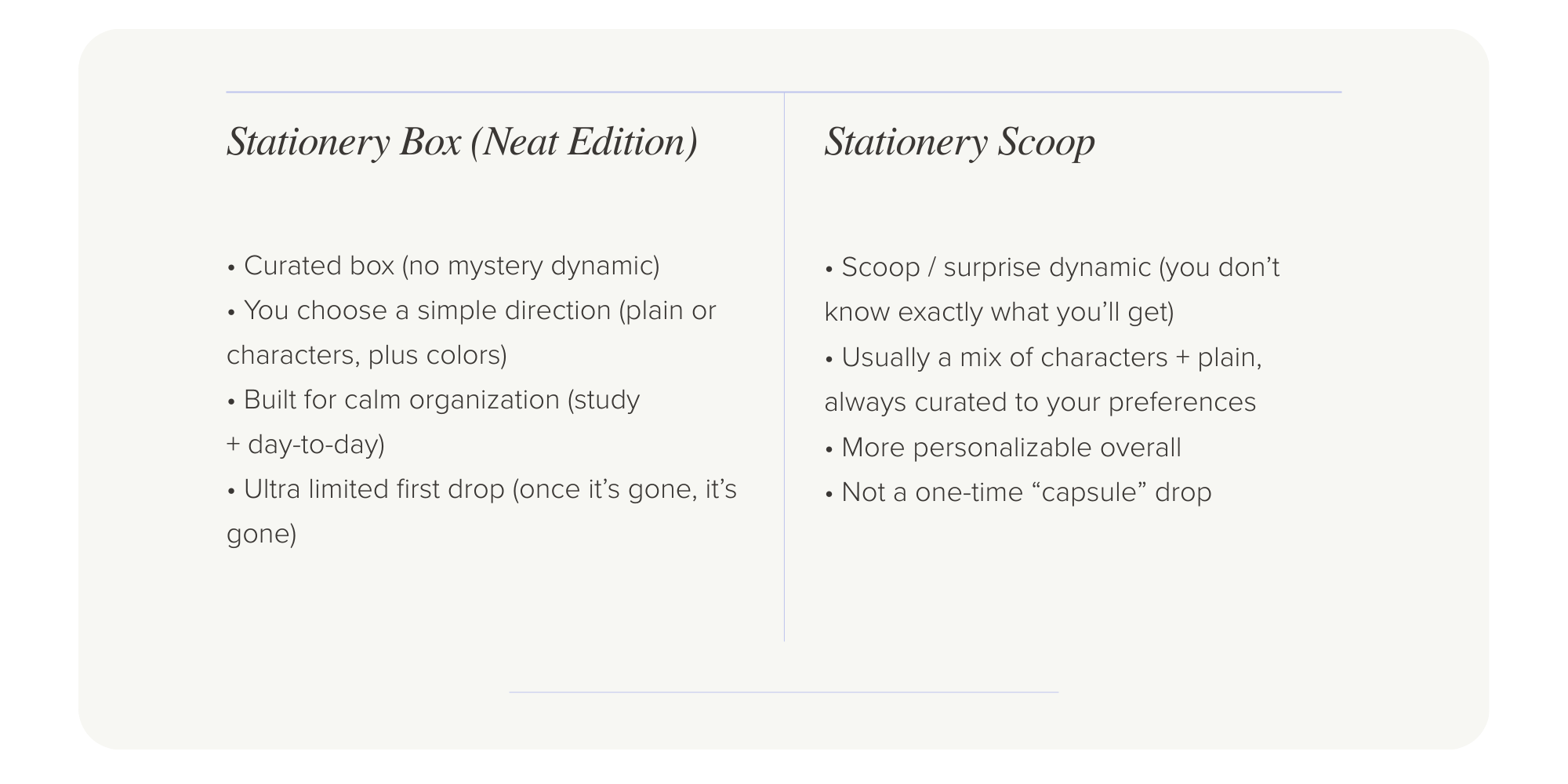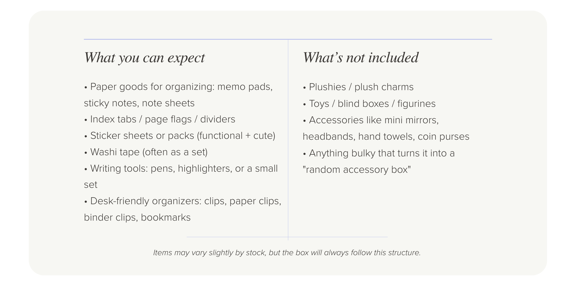 This is not a “scoop” / mystery dynamic. It’s a curated box with clear inclusions.